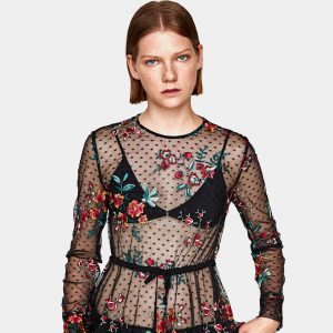 Sale Flower Embroidery w/ Chest Pocket Shirt
